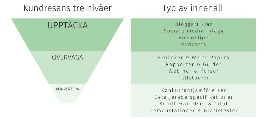På vilken nivå i kundresan din presumtiva kund befinner sig styr hur du lägger upp sidan, vad för information du ska inkludera och vilken typ av innehåll du ska ta fram.