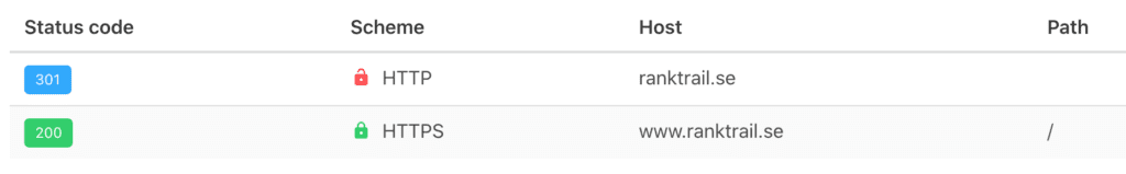 Det finns en rad olika verktyg som man kan använda för att titta närmare på redirectkedjor. En stor del av dessa är gratis. Ett verktyg som jag använder är https://httpstatus.io/