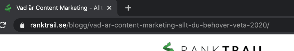 Strukturen i bilden ovan: [ranktrail.se] / [blogg] / [vad-ar-content-marketing-allt-du-behöver-veta-2020]